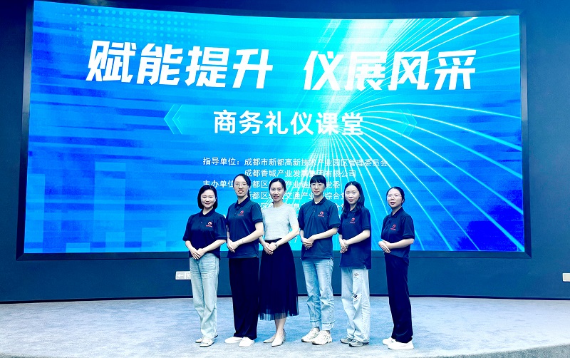 7月25日 ,为提升公司在商务接待方面的专业能力和形象气质,公司派出行政部与销售部代表参加了四川新都高新技术产业园区主办的“赋能提升,仪展风采”的商务礼仪课堂培训活动。