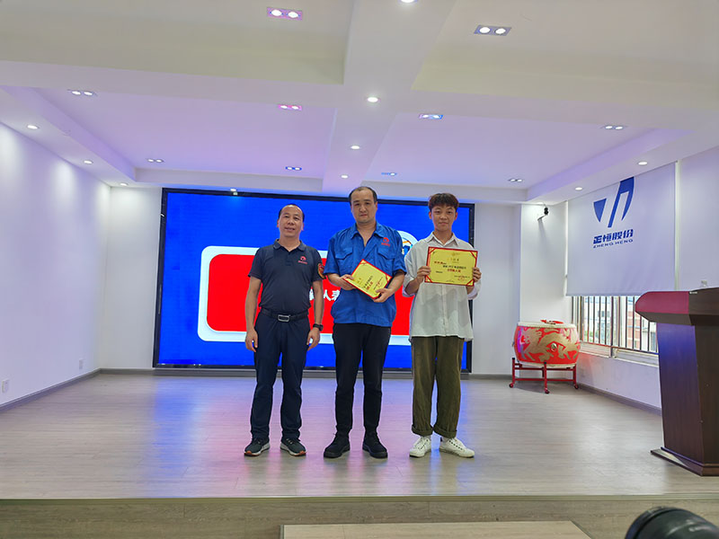 荣获优秀新人奖的有何开旭、杨睿、谢志彬、伍李毅四位同事,由四川锅炉高级技工学校李校长与雷治川部长为他们颁发荣誉证书。