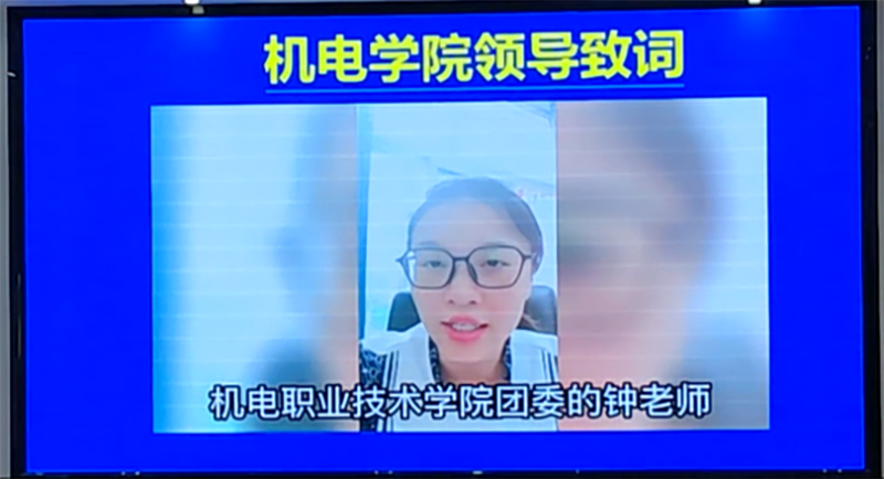 未亲临现场的四川现代智能制造学院温副院长、四川机电学院的团委钟老师以视频的形式与实训的同学们见面。